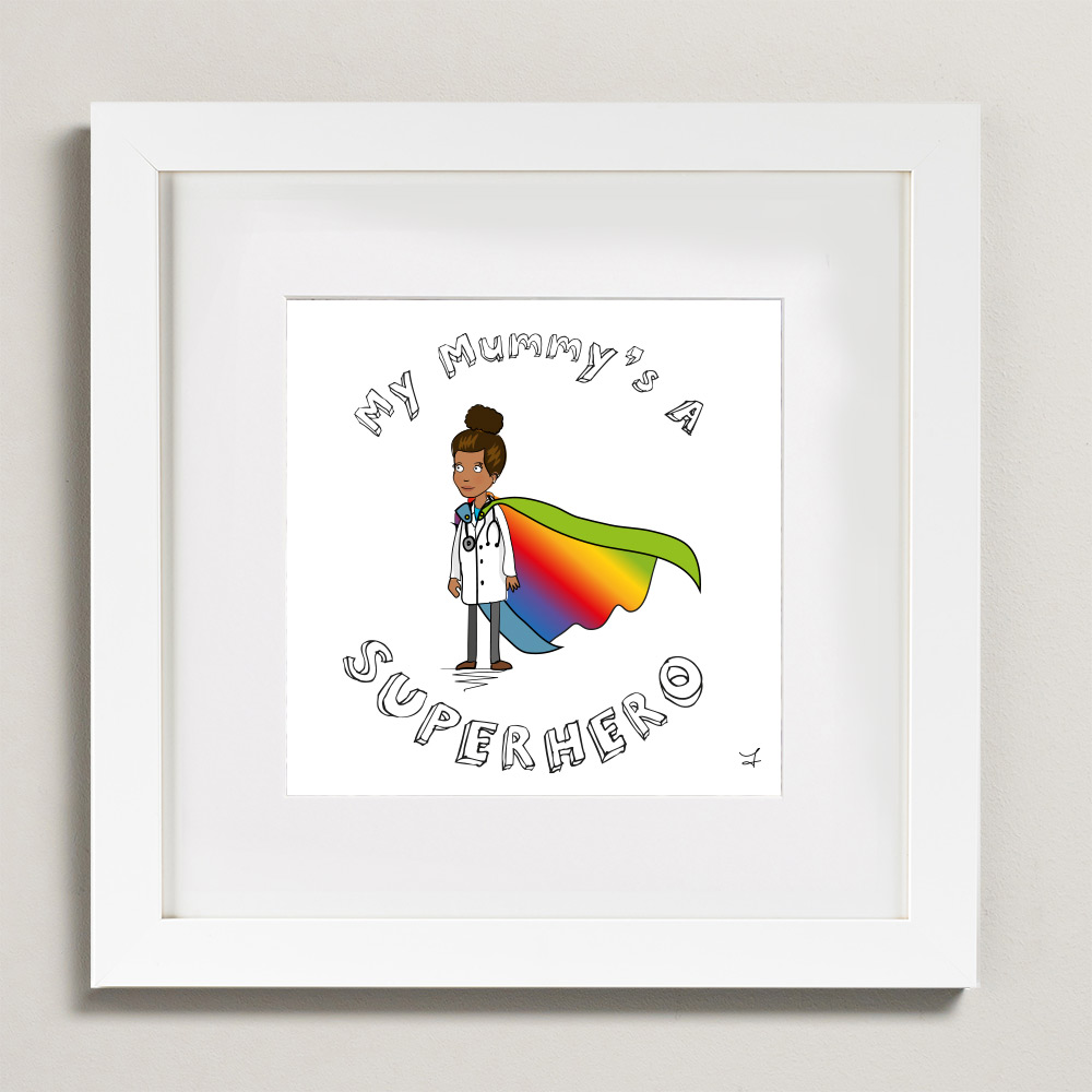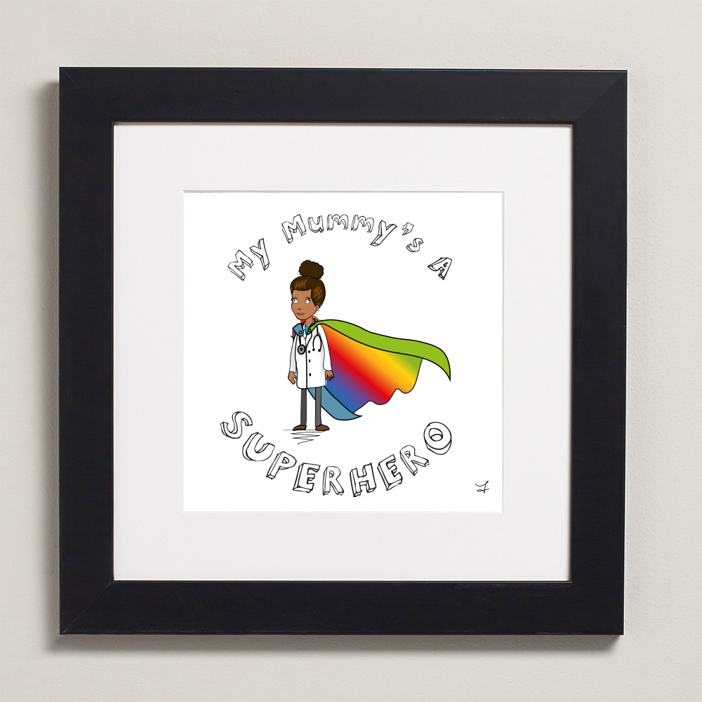 My Mummy/Name is a Superhero Framed Mounted Picture. Personalise with skin and hair colour/style. Choose to add name.