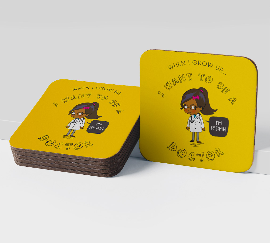 When I grow up… I want to be a Doctor coasters. Personalise with skin and hair colour. Enter your child’s name.